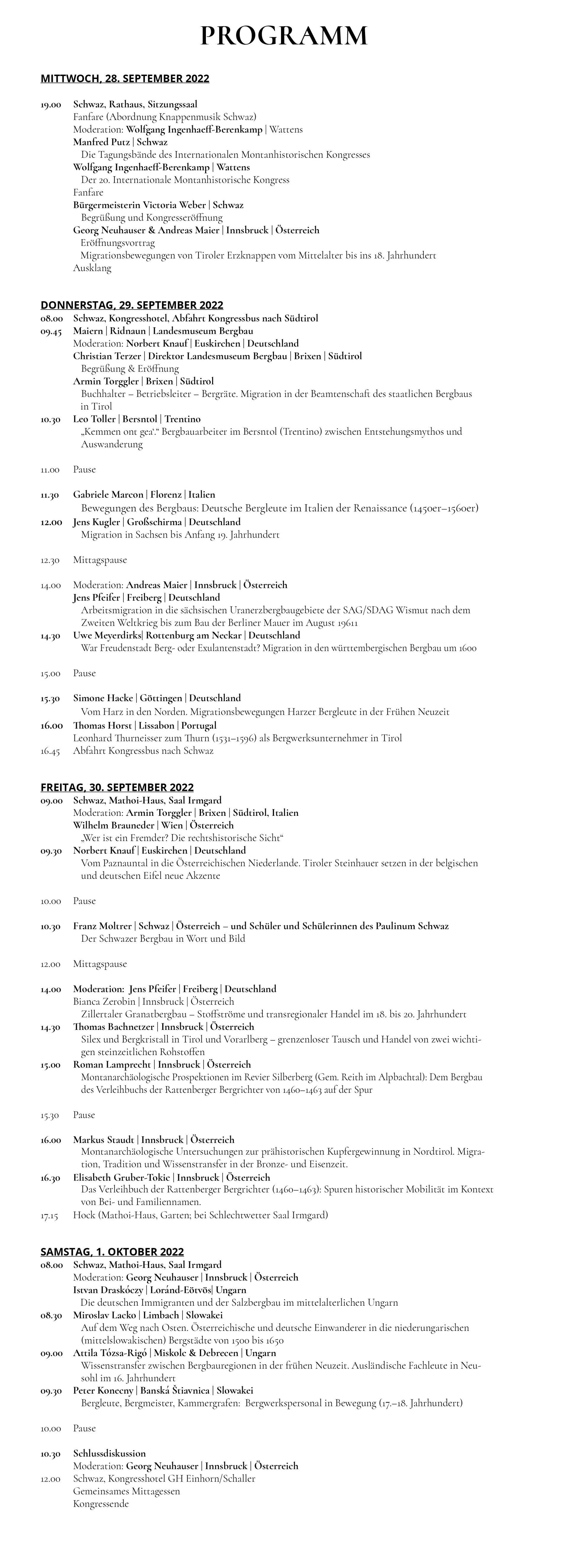 in Schwaz statt. Die Tagung endet am Samstag, 1. Oktober 2022,